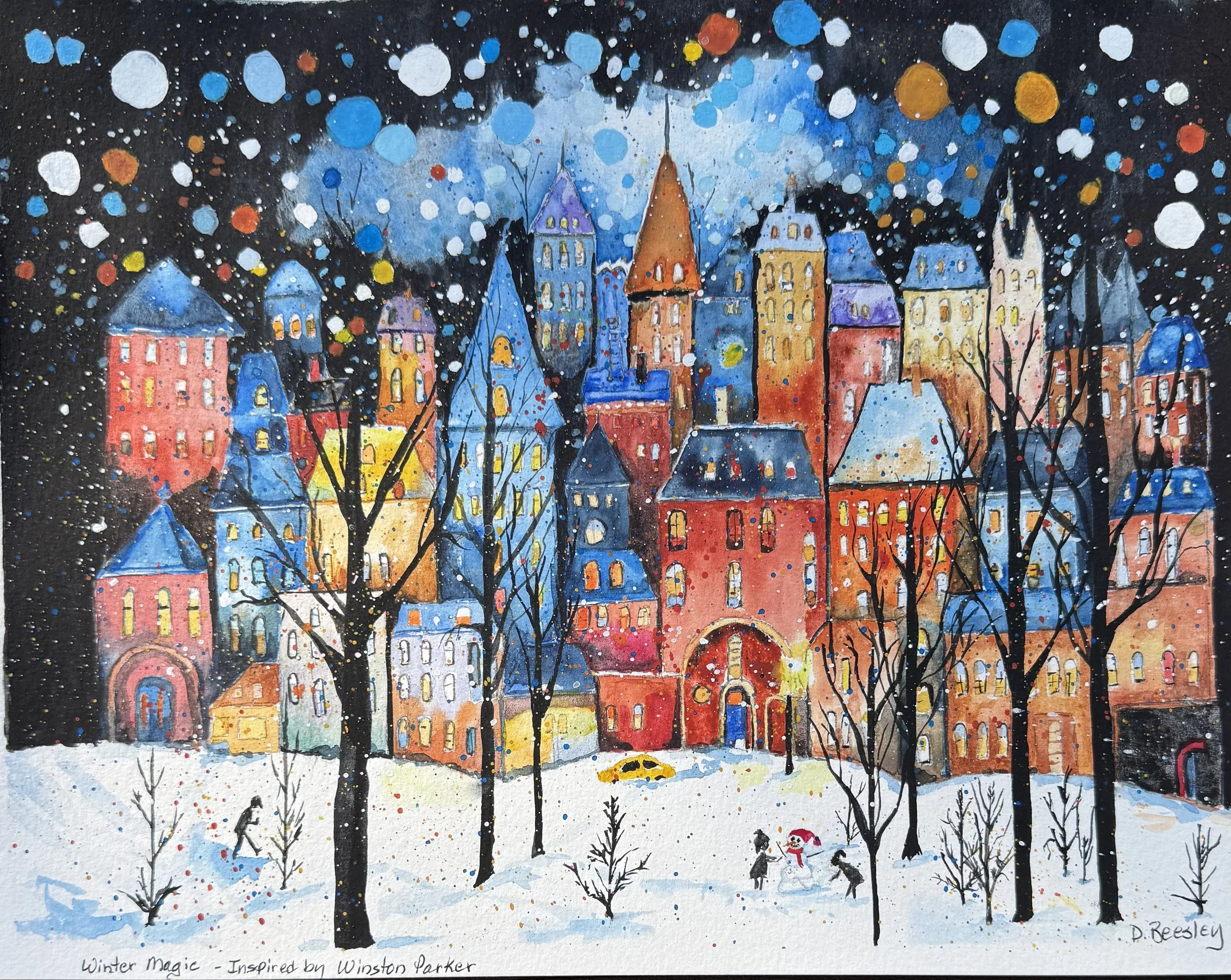 SOLD- Winter Magic, 15”x18“, Watercolor & gouache highlights, $200