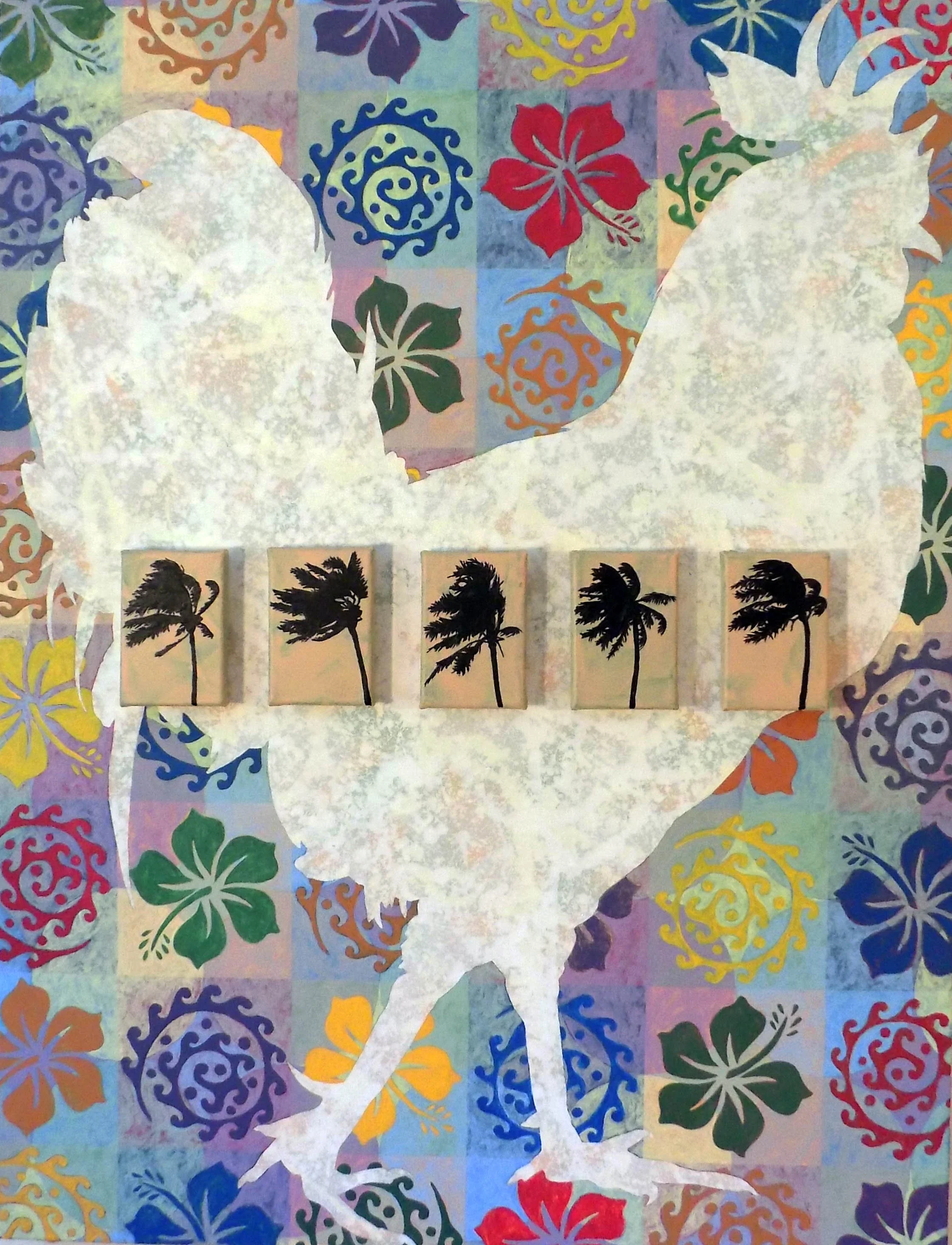 Rooster, 50”x38“, Acrylic on canvas & mixed media, $450