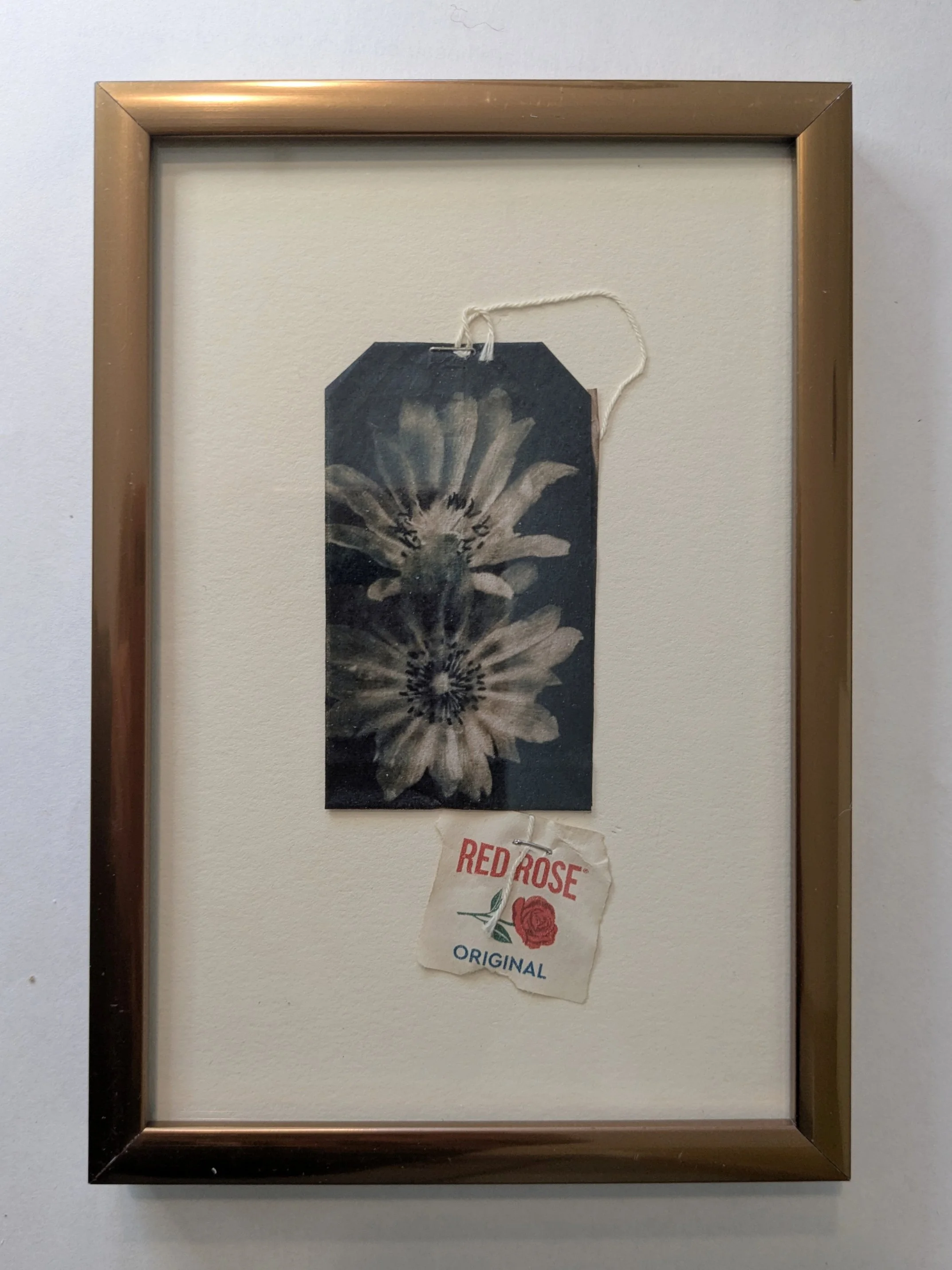 SOLD - Bitterroot, 6”x4”, Toned cyanotype on Red Rose tea bag, $48.00