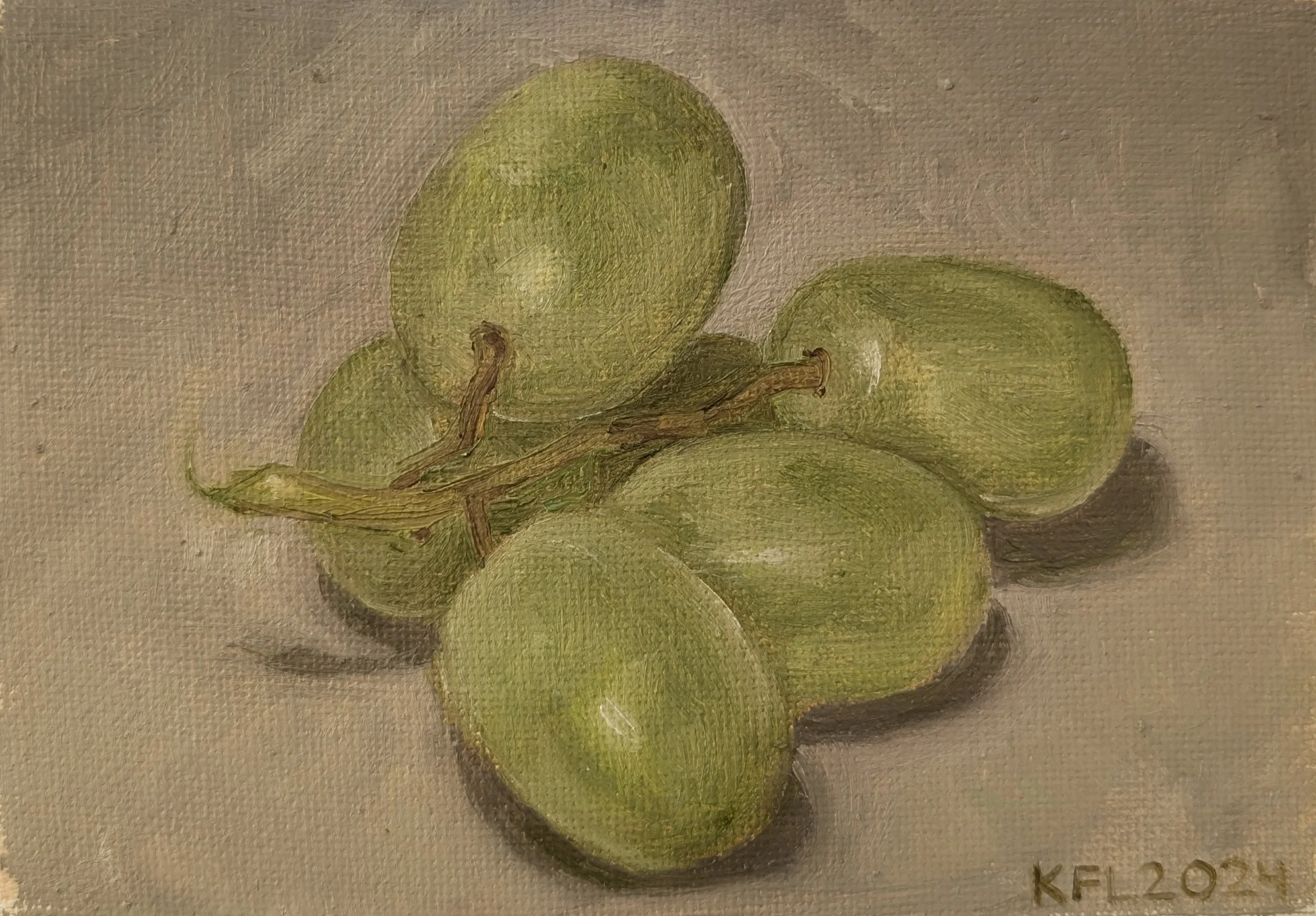 Grapes, 6”x4“, Oil on canvas pad, $150.00
