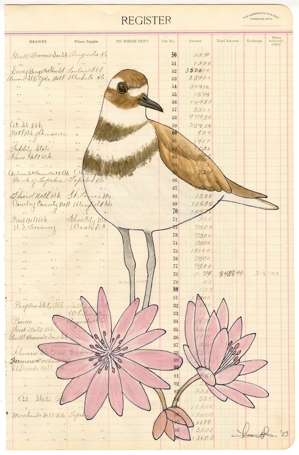 Killdeer and Bitterroot - Mixed Media, 15” x 21” - $900