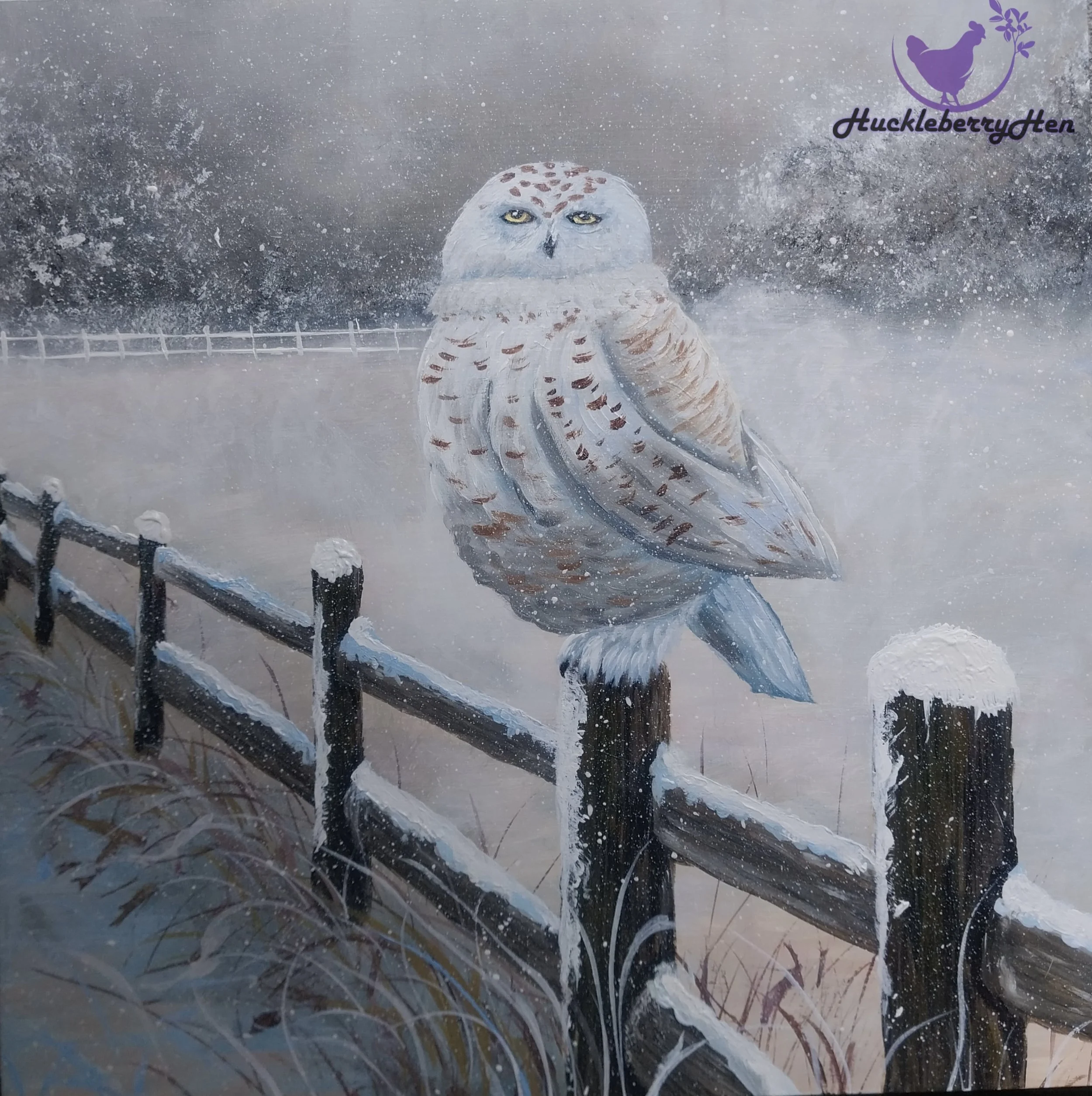 Snow Owl, 16”x16”, Acrylic on wood panel - $200