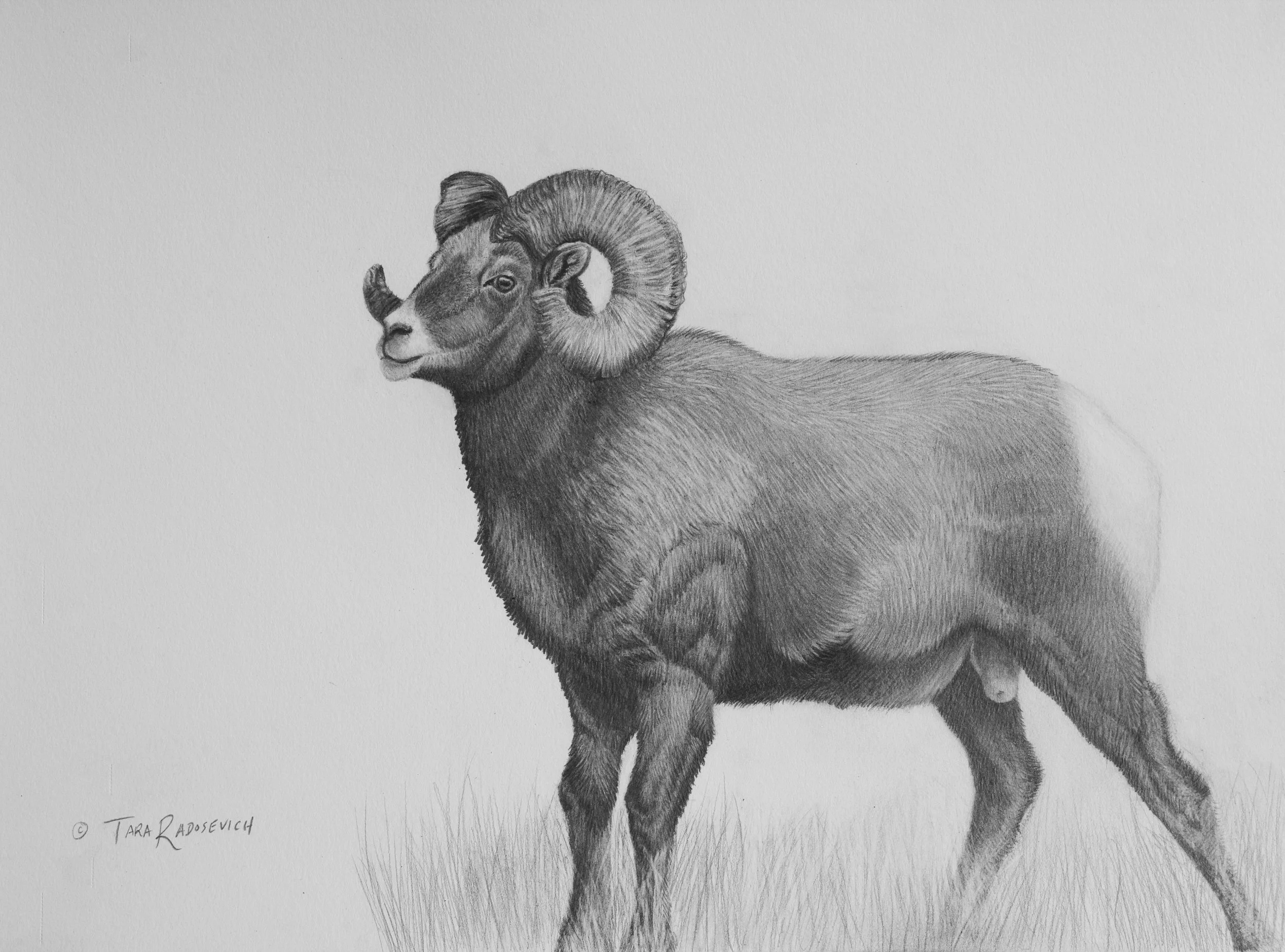 Stocky Bighorn, 12x15, Graphite pencil on paper, $300.00