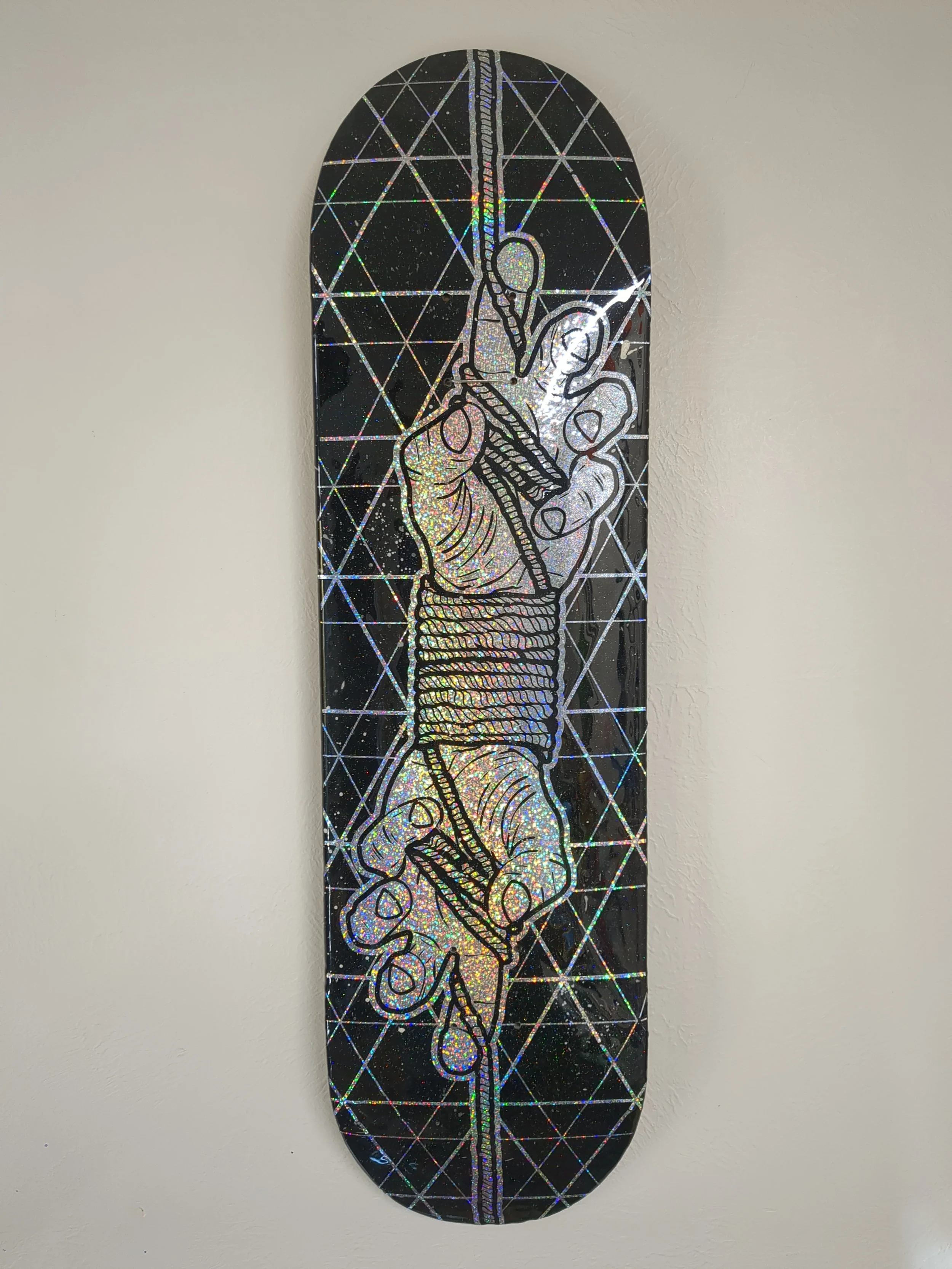 Tension Skate Deck, 32”x8.5“, Wood, Enamel, Holographic Vinyl, epoxy resin, $200.00