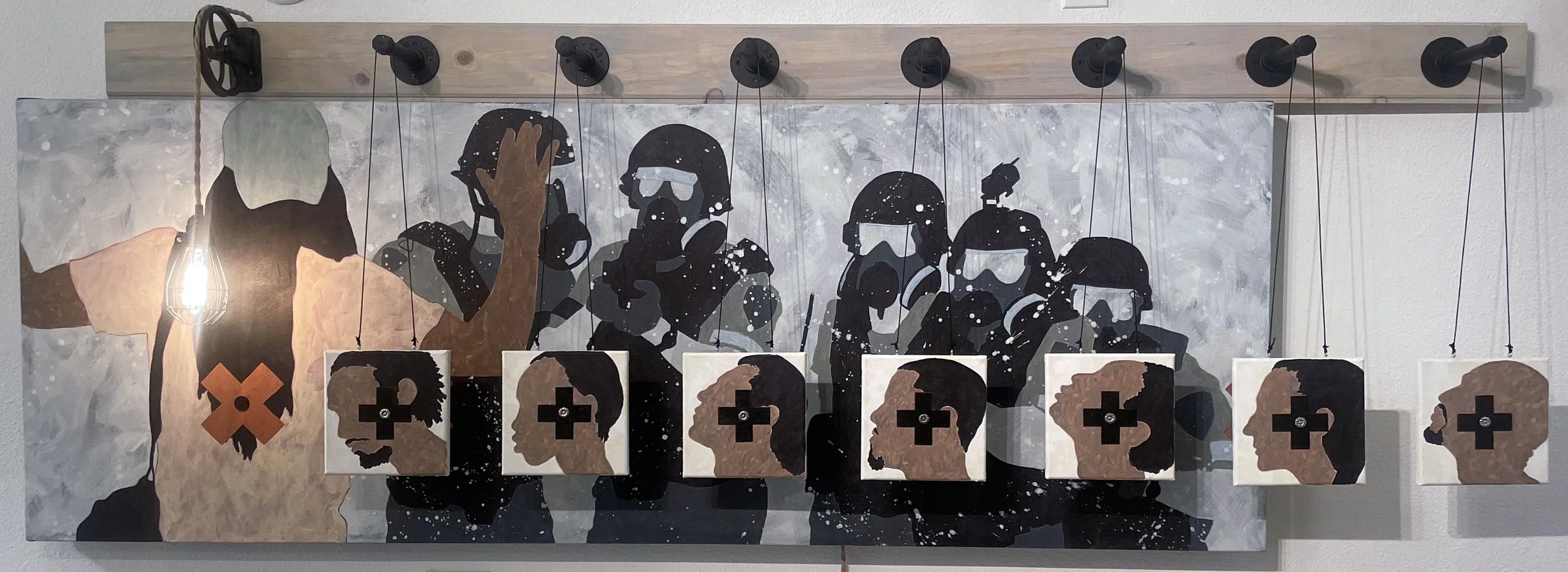 Intolerance, 35”x101”x8”, Acrylic on canvas & mixed media, $2,800