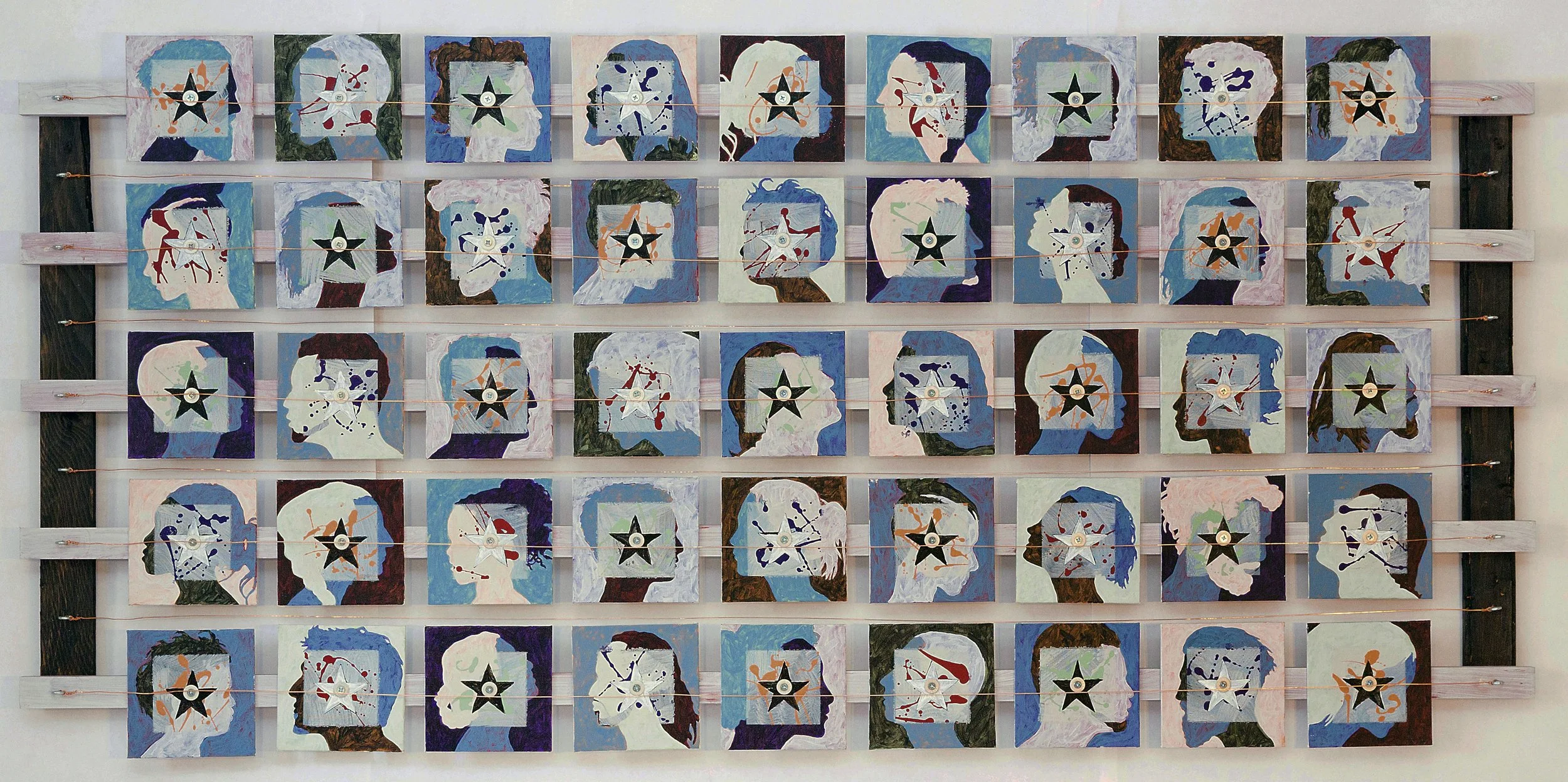 TWENTY-FIVE LIVES, 36” x 48”, mixed media, $450.00
