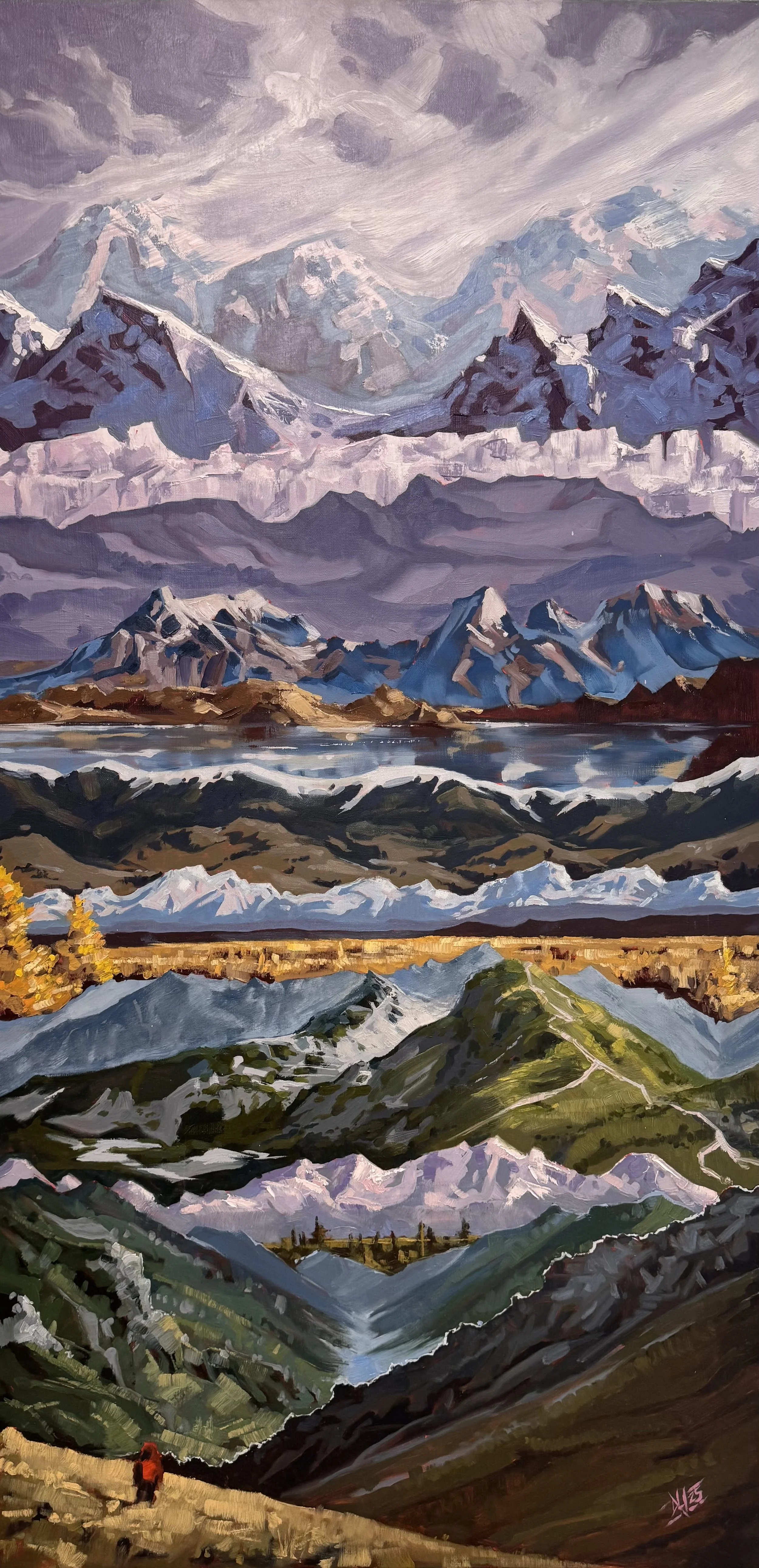 Migrants - 86” x 42“, Acrylic on canvas & mixed media - $2,600.00